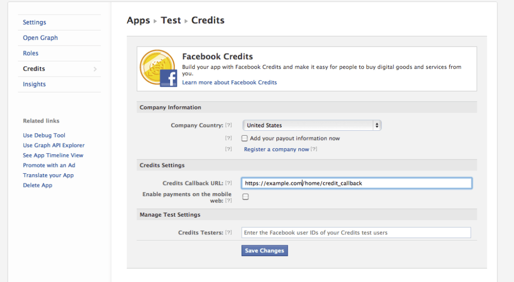 A couple months ago, I tried to integrate Facebook credits with a very simple Rails Facebook App. What a mess! The process is complicated, poorly documented, and hopelessly confusing. Now, I’m thinking I should make a post showing what I did to get it working. My goal here is to give people a resource they can use to integrate credits with their Facebook applications.